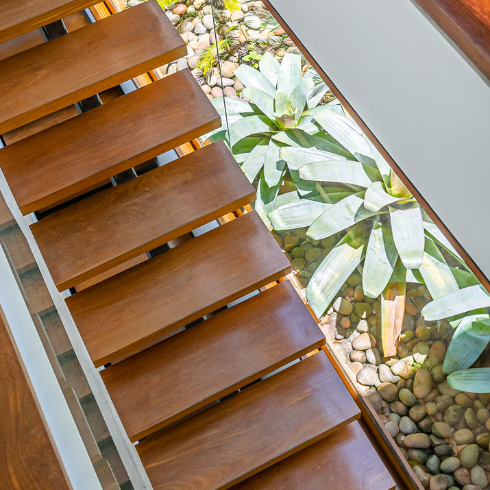No térreo, há uma quarta suíte com lavabo e chuveiro, que também pode ser acessada de forma independente, ideal para hóspedes ou uso multifuncional. O pavimento ainda conta com escritório, brinquedoteca, jardim de inverno e um living incrível com home theater, decorado com mobiliário de alto padrão e obras de arte.